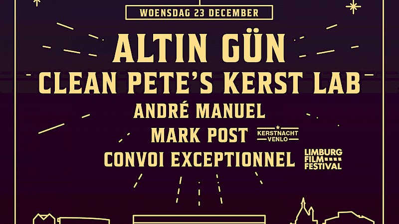 Am dritten Tag ist Platz für Altin Gün, eine der derzeit spannendsten Bands der Niederlande. Clean Pete - die größten Weihnachtsliebhaber der Niederlande - werden ebenfalls mit ihrer speziellen Weihnachtsshow dabei sein. Der Kabarettist André Manuel wird die Einzelheiten dieses seltsamen Koronajahres erläutern. An allen drei Tagen werden auch Kurzfilme zu sehen sein, die vom Limburger Filmfestival programmiert werden.