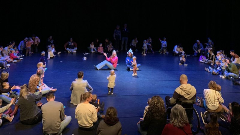 Voorlezen, muziek en spelletjes voor peuters in een gezellige theatersetting.