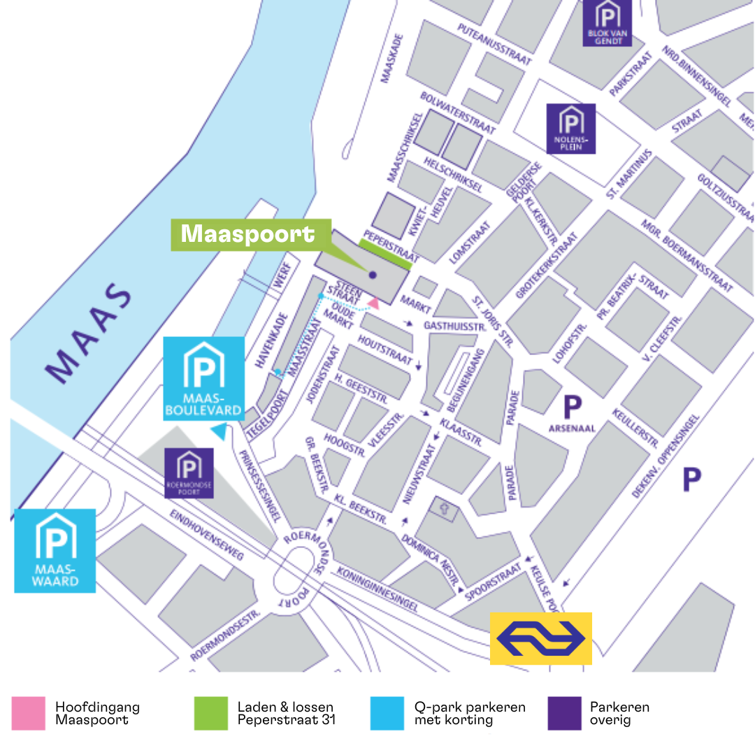 Een van de valkuilen bij het zoeken naar een vergaderlocatie is een slechte bereikbaarheid. Daarom is Maaspoort zo trots op de faciliteiten die wij binnen handbereik hebben. Het station van Venlo is slechts tien minuten wandelen door het prachtige centrum van Venlo. Maar ook voor de automobilist is een parkeergarage op een steenworp afstand. Je hoeft met de goede bereikbaarheid van Maaspoort zeker geen laatkomers te verwachten!